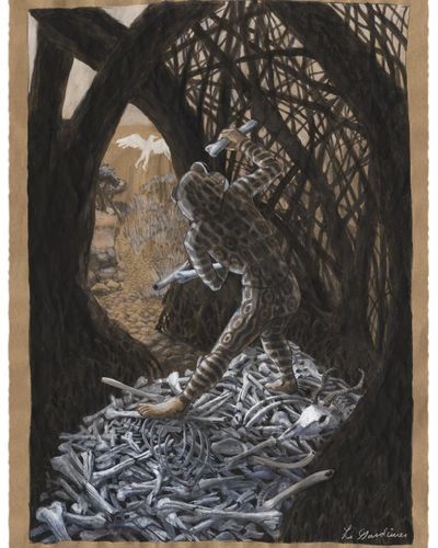 “And the White Crows said: ‘We sit here to look after the bones for Oom Leeuw.’